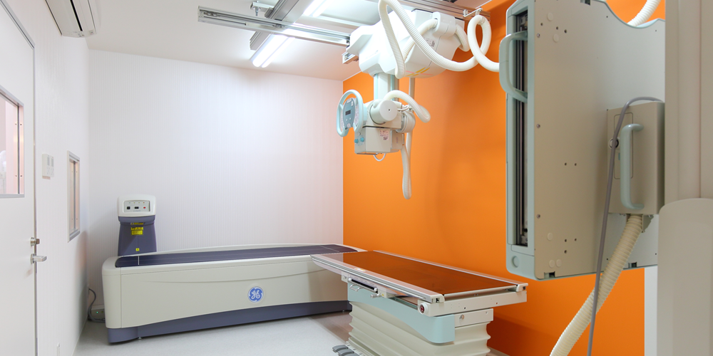 • 島津製作所製の天井走行型・大型レントゲン装置とFUJI FILM製のフラットパネルを使用することにより、 ほぼタイムレスに電子カルテの画像取込みが行え、現像時間もお待たせすることがありません。