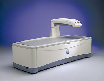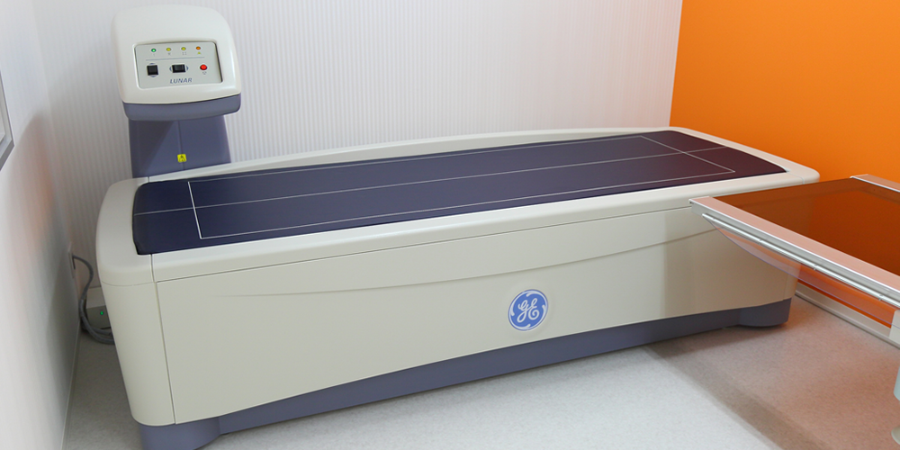 当院では精密な骨密度測定装置、米国GE社PRODIGY(プロディジー)を設置し、骨がスカスカになる骨粗しょう症の診断及び治療を行なっております。この骨密度測定装置は骨折が発生しやすい腰椎部、大腿骨部の骨密度を被ばく量の少ないX線を使用し直接測定可能な装置です。腰の骨や大腿骨の骨の骨密度を正確に測定し、今後の治療や対策を考えます。当院では骨粗しょう症の治療や予防を行います。